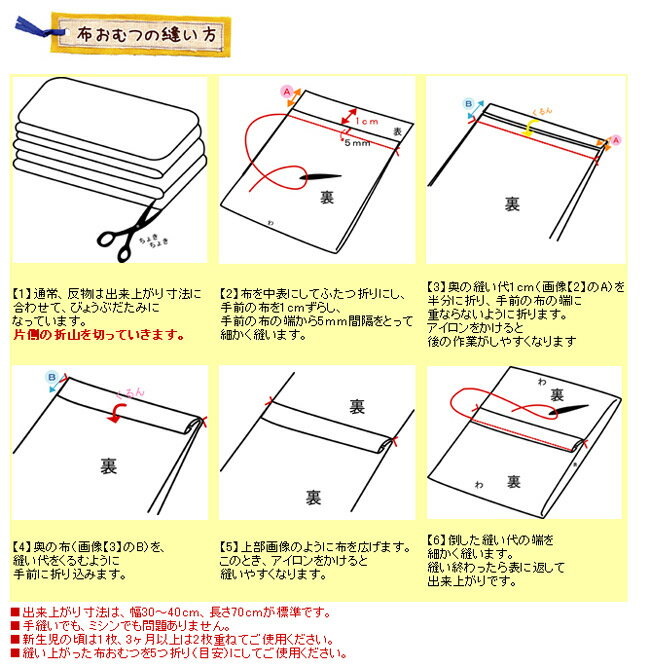 ■縫い上がった布おむつを5つ折り(目安)にしてご使用ください。