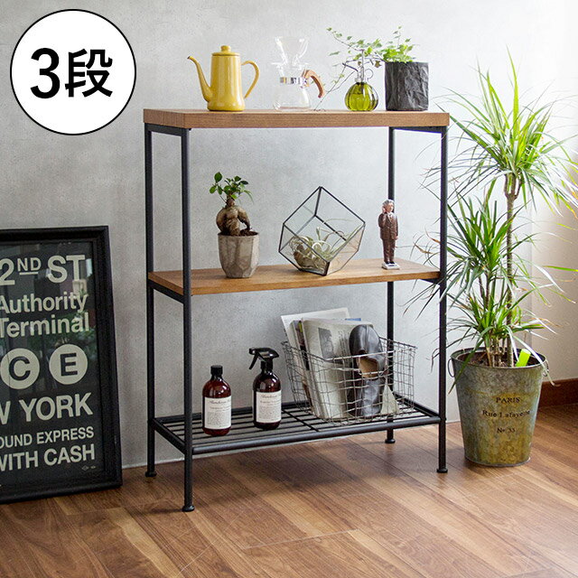 【送料無料】ヴィンテージ ラック 木製 Arure 3段(収納家具 ラック ウッド 木製 75cm幅 75 ディスプレイラック オープンラック フリーラック マガジンラック ディスプレイラック レトロ ビンテージ ミッドセンチュリー アンティーク 西海岸 モダン ブラウン) 【N09】