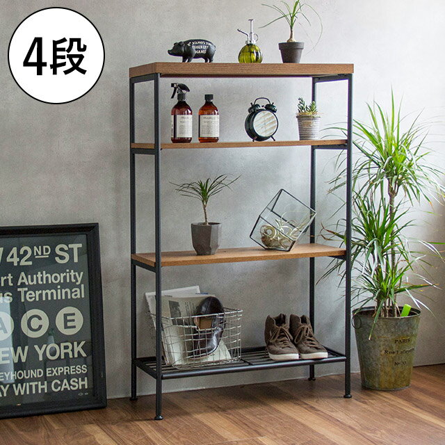 【送料無料】ヴィンテージ ラック 木製 Arure 4段(収納家具 ラック ウッド 木製 75cm幅 75 ディスプレイラック オープンラック フリーラック マガジンラック ディスプレイラック レトロ ビンテージ ミッドセンチュリー アンティーク 西海岸 モダン ブラウン) 【N09】