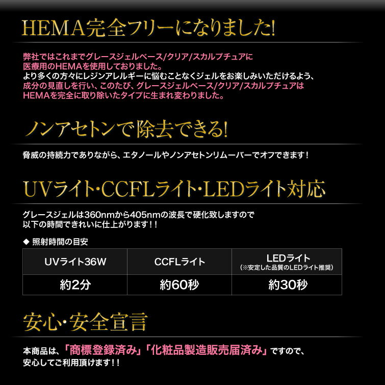 ※予約販売:5月18日入荷予定※●ゆうメール不可●使用サロン様全国急増中!無色透明で黄ばまない!ガラスの様な最高のツヤ!ジェルグレースジェル クリア 15ml